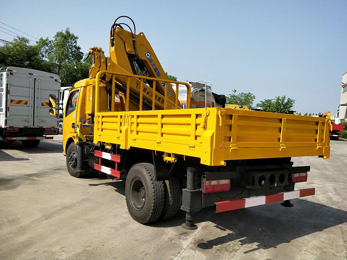 東風(fēng)福瑞卡隨車吊,底盤配置,云內(nèi)130馬力國五發(fā)動機,小八檔變速箱,230mm大梁,8.25R20鋼絲胎,車廂3.4米,加裝自卸,后支腿,裝配徐工5噸三節(jié)臂折疊臂,工作半徑8米,總高度11米,可加裝遙控裝置。