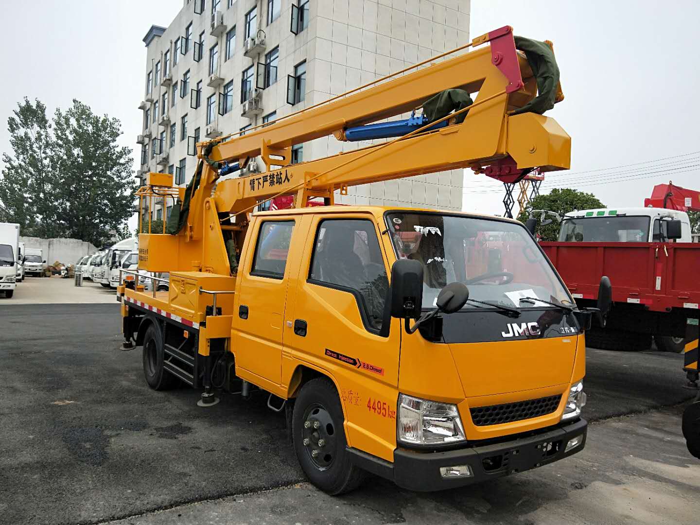 主要組成 高空作業(yè)車除底盤外,為實(shí)現(xiàn)其高空作業(yè)功能,還有動(dòng)力傳動(dòng)裝置、工作裝置、安全裝置及液壓系統(tǒng)等。 動(dòng)力傳動(dòng)裝置 動(dòng)力傳動(dòng)裝置包括高空作業(yè)車各工作裝置的動(dòng)力傳動(dòng)部分。常見的有內(nèi)燃機(jī)-機(jī)械傳動(dòng)、電力-機(jī)械傳動(dòng)、內(nèi)燃機(jī)-電力傳動(dòng)、內(nèi)燃機(jī)-液壓傳動(dòng)等傳動(dòng)方式。(1)內(nèi)燃機(jī)-機(jī)械傳動(dòng) 動(dòng)力源為汽車發(fā)動(dòng)機(jī),動(dòng)力經(jīng)變速器傳出后,經(jīng)分動(dòng)器、離合器、減速器、卷揚(yáng)機(jī)、滑輪以及鋼絲繩等元件傳遞到工作裝置,傳動(dòng)線路長,結(jié)構(gòu)較復(fù)雜,僅在用途單一的高空作業(yè)車中使用。(2)電力-機(jī)械傳動(dòng) 利用外界電源或車載電源,通過電動(dòng)機(jī)將電能轉(zhuǎn)變?yōu)闄C(jī)械能,再經(jīng)機(jī)械傳動(dòng)裝置件將動(dòng)力傳遞到各工作裝置。由于電動(dòng)機(jī)具有可逆轉(zhuǎn)性和在較大轉(zhuǎn)速范圍內(nèi)實(shí)現(xiàn)無級調(diào)速等特點(diǎn),并且各機(jī)構(gòu)可有獨(dú)立的電機(jī)驅(qū)動(dòng),簡化了傳動(dòng)和操縱機(jī)構(gòu),而且噪聲較小、污染少,適用于外接電源方便或流動(dòng)性不大的場地作業(yè)。3)內(nèi)燃機(jī)-電力傳動(dòng) 傳動(dòng)路線是汽車發(fā)動(dòng)機(jī)-發(fā)電機(jī)-電動(dòng)機(jī),然后帶動(dòng)各工作裝置運(yùn)轉(zhuǎn)。其優(yōu)點(diǎn)是利用直流電機(jī)的優(yōu)良工作特性,使高空作業(yè)車獲得好的作業(yè)性能,但質(zhì)量較重,費(fèi)用較高。