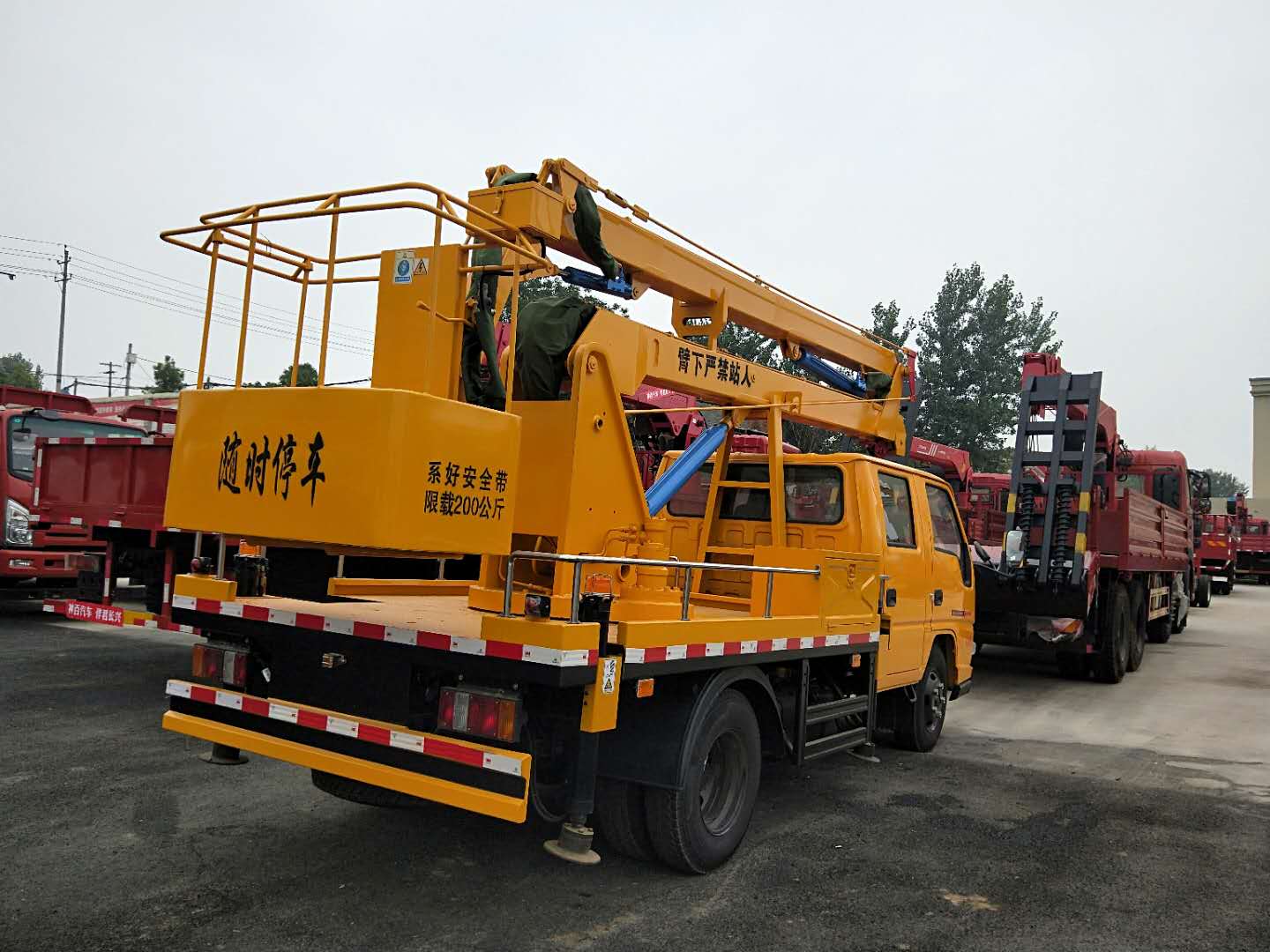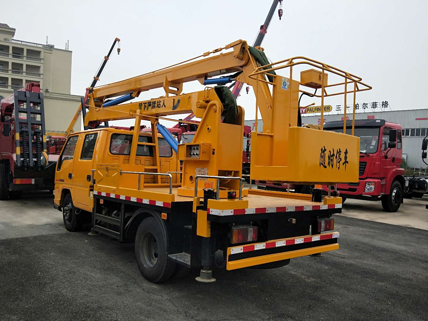 1、臂架和支腿均采用低合金Q345型材,四周無焊縫,外形美觀,受力大,強(qiáng)度高; 2、H型支腿穩(wěn)定性好,支腿可同時(shí)或單獨(dú)操作,操作靈活,能適應(yīng)多種工況; 3、回轉(zhuǎn)機(jī)構(gòu)采用可調(diào)節(jié)式,方便調(diào)節(jié); 4、轉(zhuǎn)臺雙向360°回轉(zhuǎn),采用了先進(jìn)的渦輪蝸桿式減速機(jī)構(gòu),(具有自潤滑和自鎖功能)后期維護(hù)也可方便的通過調(diào)整螺栓位置輕松達(dá)到效果; 5、上車操作采用集成電控閥塊模式,布局美觀,操作平穩(wěn),維護(hù)方便; 6、下車與上車互鎖,操作安全、可靠; 7、上車操作通過節(jié)流閥實(shí)現(xiàn)無極調(diào)速; 8、吊籃采用外置拉桿機(jī)械式調(diào)平,更加穩(wěn)定和可靠; 9、轉(zhuǎn)臺和吊籃設(shè)有啟動(dòng)和熄火開關(guān),操作方便,節(jié)省燃油;